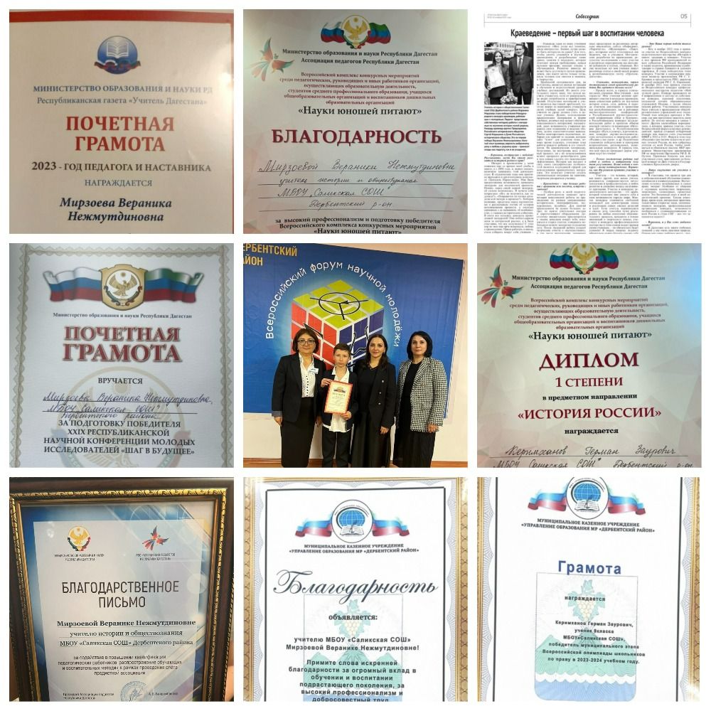 8 февраля, в день 300-летия российской науки, в Дагестане прошел финальный этап Всероссийского конкурса исследовательских работ и проектов учащихся «Науки юношей питают». Организаторами конкурса выступают Министерство образования и науки Дагестана и Ассоциация педагогов Республики Дагестан . Мой ученик Керимханов Герман выступил в секции «История России» с темой «Историческая память : особенности и проблемы сохранения»и занял 1 место . Мне вручили благодарность за подготовку победителя конкурса .